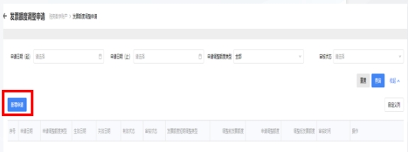 您也可以進入【開票業務】--【藍字發票開具】界面,點擊“去調整”,系統將自動跳轉至發票額度調整申請界面。進入發票額度調整申請界面后,點擊【新增申請】
