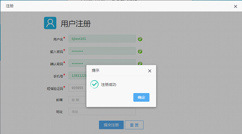 3.? 納稅人點擊“提交注冊”按鈕后,系統提示注冊成功。