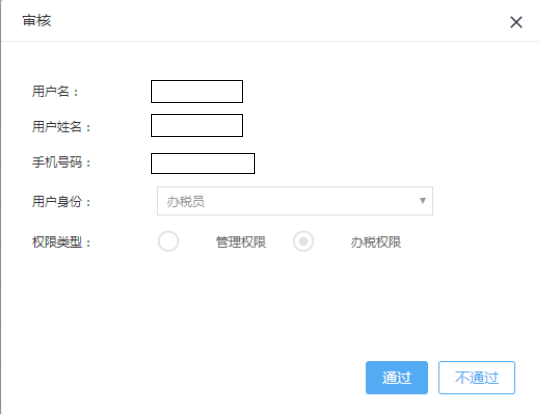 4)? 企業納稅人選擇關聯后的用戶名,點擊“審核”按鈕。